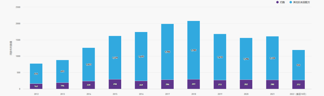 近年來與奶酪配方相關(guān)的專利有所下降,