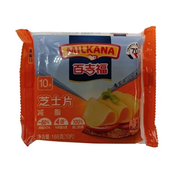 百吉福(Milkana)的減脂芝士片含有淀粉和糊精以及牛乳蛋白,這些成分可以用來減少芝士片的脂肪含量。