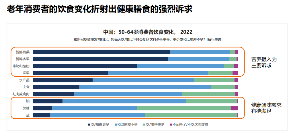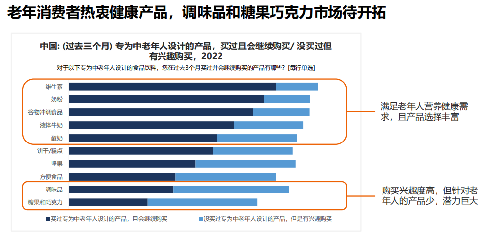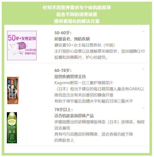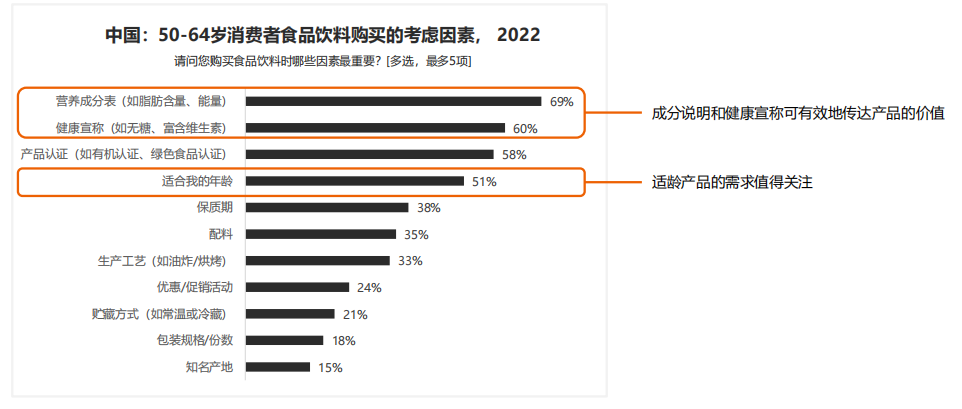 營養(yǎng)成分和健康宣稱是老年消費(fèi)者的普遍訴求,適齡宣稱成為新的機(jī)會點(diǎn)。