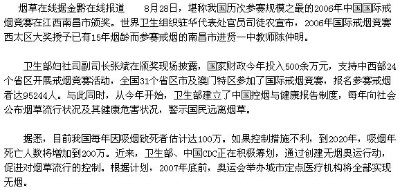 煙民參賽戒煙 衛(wèi)生部建立控?zé)熍c健康報(bào)告制度