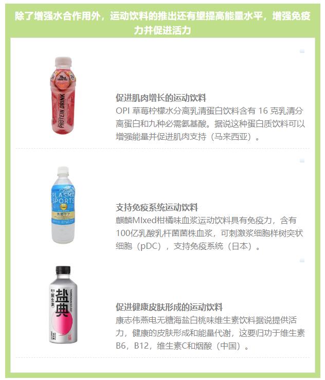 此外,亞洲運動飲料的推出正在多樣化,從補水轉(zhuǎn)向更多的功能性能量效益。
