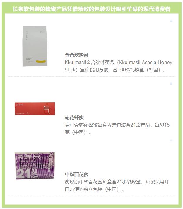 蜂蜜新品中的長條軟包裝出現(xiàn)增長