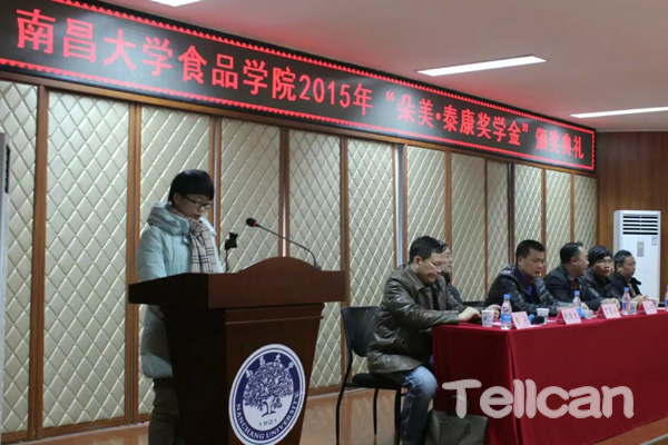 2015年12月29日上午,第二屆“朵美·泰康獎(jiǎng)學(xué)金”頒獎(jiǎng)典禮在南昌大學(xué)食品學(xué)院舉行。南昌朵美生物科技有限公司總經(jīng)理丁泉水、南昌泰康食品科技有限公司總經(jīng)理馬小明、南昌大學(xué)學(xué)工委辦主任游偉平、食品學(xué)院院長(zhǎng)劉成梅、黨委書記譚杰、黨委副書記劉志鳳、副院長(zhǎng)張國(guó)文、副院長(zhǎng)熊濤以及全體輔導(dǎo)員出席此次典禮。典禮由劉志鳳主持。