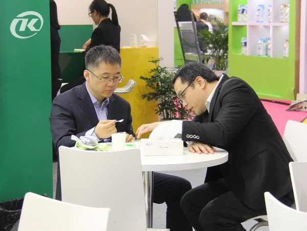 參展期間,參觀品嘗的客戶絡(luò)繹不絕,其中有一個(gè)客戶在品嘗“悠享”酸奶后,當(dāng)即決定采購(gòu)產(chǎn)品中試,稱一直在尋找類似的產(chǎn)品,但是一直沒有成功,很慶幸能在展會(huì)找到我們。其實(shí)我們更開心的是朵美的產(chǎn)品得到了客戶的認(rèn)可,所有付出都是值得的,也正因?yàn)榘橹銈兊闹С?,泰康才一路走到現(xiàn)在,不斷發(fā)展壯大。