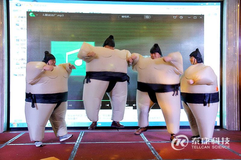 最讓人眼紅亢奮的當(dāng)屬晚會的抽獎了,除了往常的一/二/三等獎,今年還特設(shè)了特別幸運獎,人人參與,人人抱獎。晚會的高潮是各位老總帶來的《相撲舞》,這么可愛憨厚的形象,你能想象的到他們是引領(lǐng)我們企業(yè)發(fā)展的老總嗎?